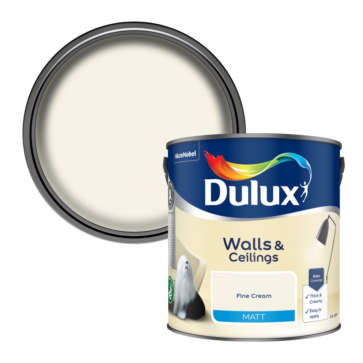 Dulux Matt Emulsion Paint For Walls And Ceilings - Fine Cream 2.5 Litres (Pack