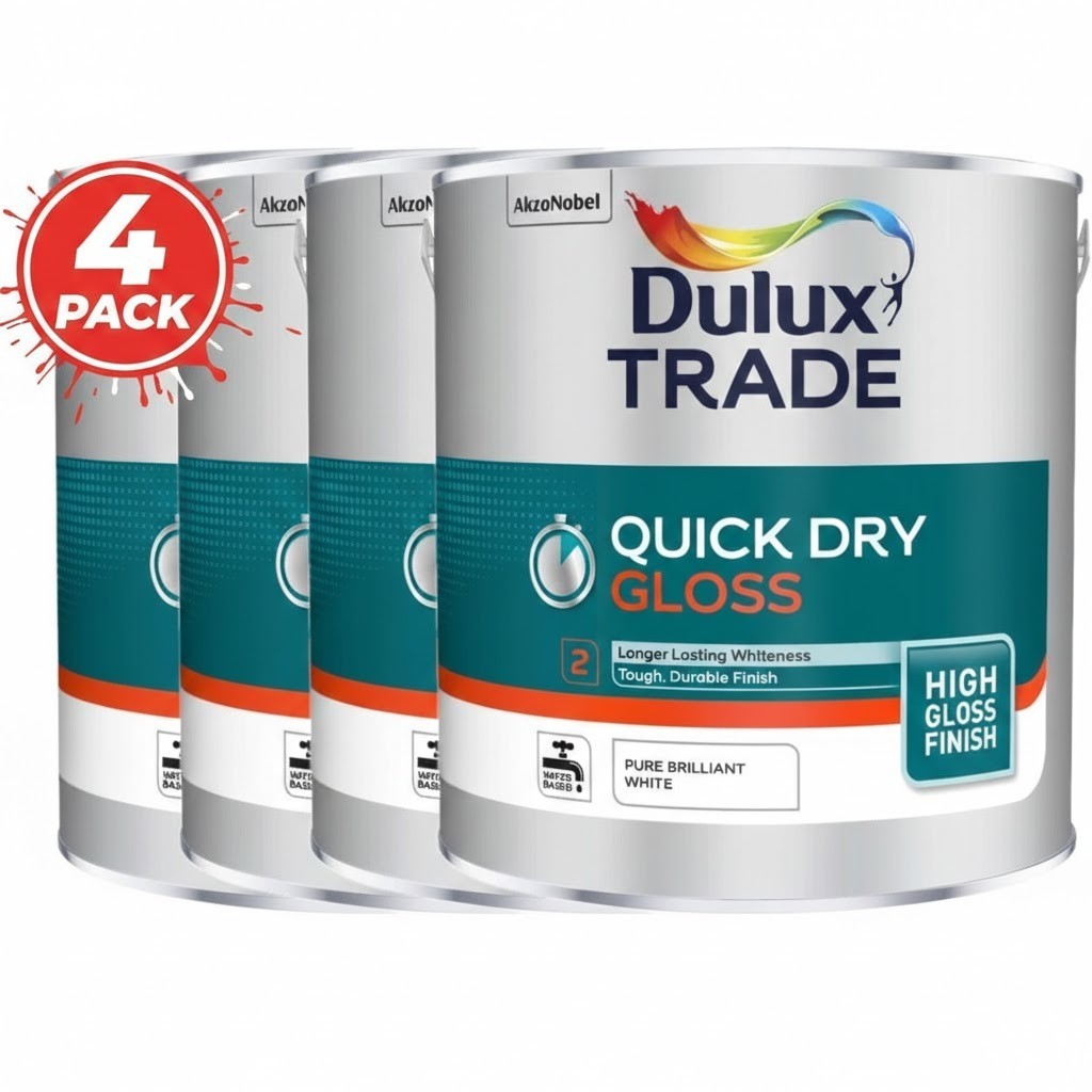 White Paint Dulux Trade 2.5L x4 Pure Brilliant White Gloss Quick Dry 4PACK NEW