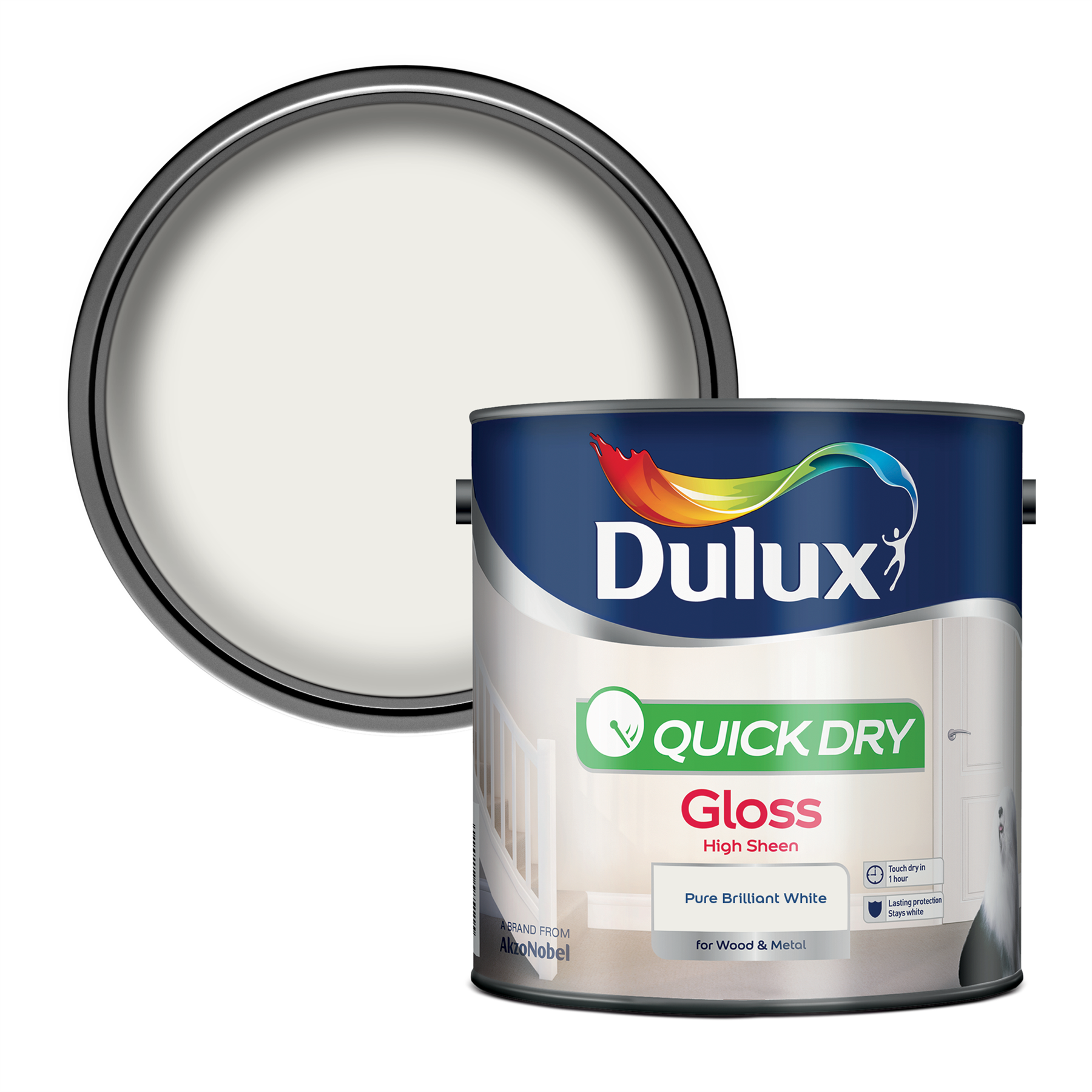Dulux Quick Dry Gloss Paint For Wood And Metal - Pure Brilliant White 2. 5 Litres