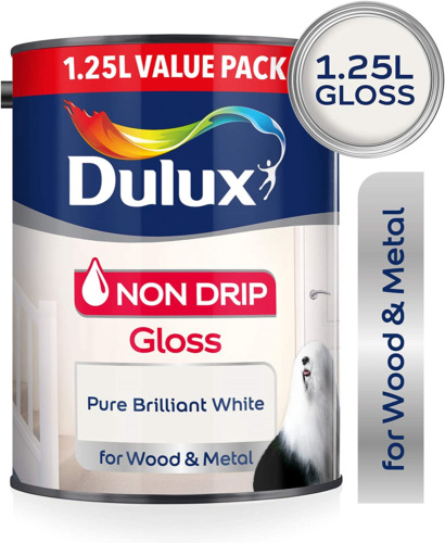 Dulux Non Drip Pure Brilliant White Gloss Wood Metal Paint 1.25L