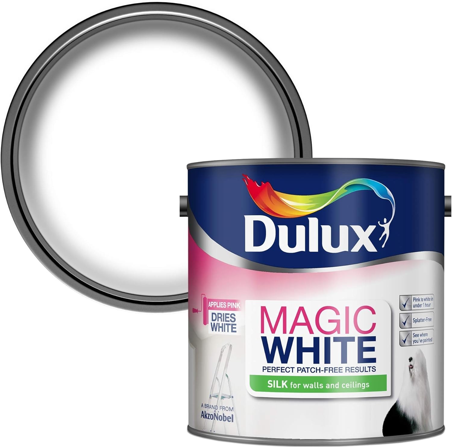 Dulux Magic White Silk Emulsion Paint For Walls And Ceilings - Pure Brilliant White 2. 5 Litres