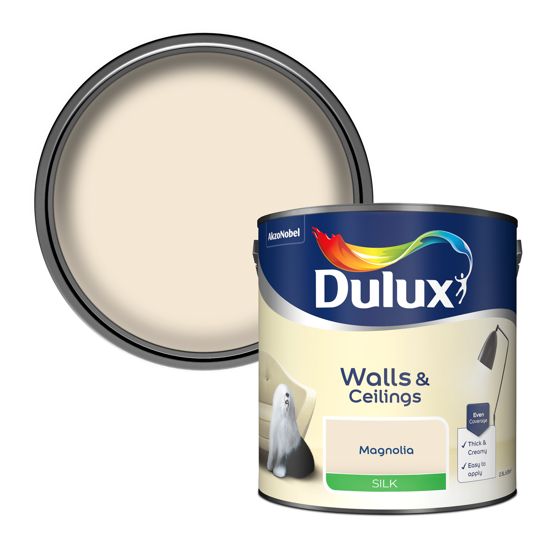 Dulux Silk Interior Walls & Ceilings Emulsion Paint 2.5L - Magnolia