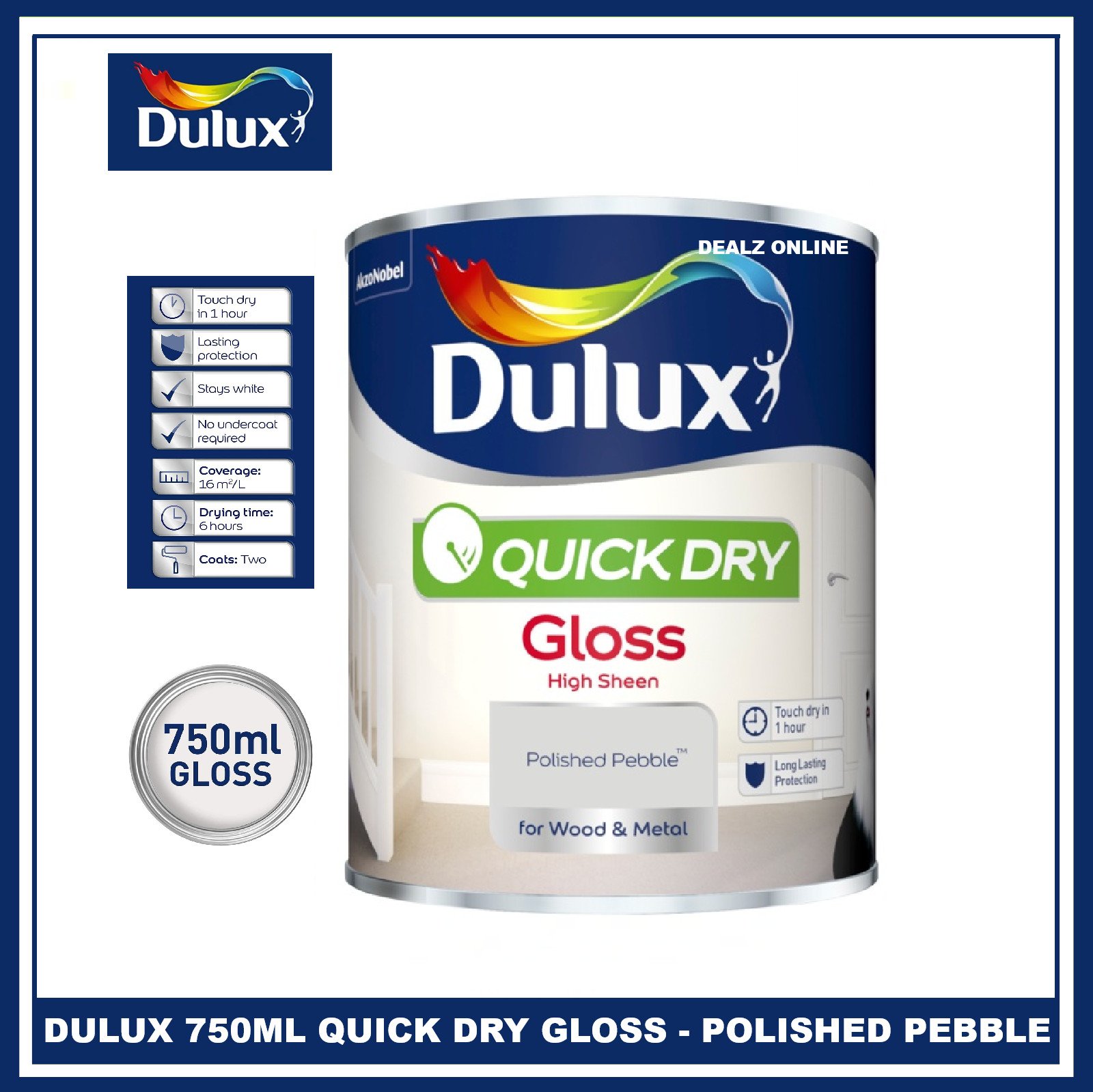 Dulux Quick Dry Polished Pebble 750ML Gloss Paint Wood Metal FREE BRUSH & GLOVES