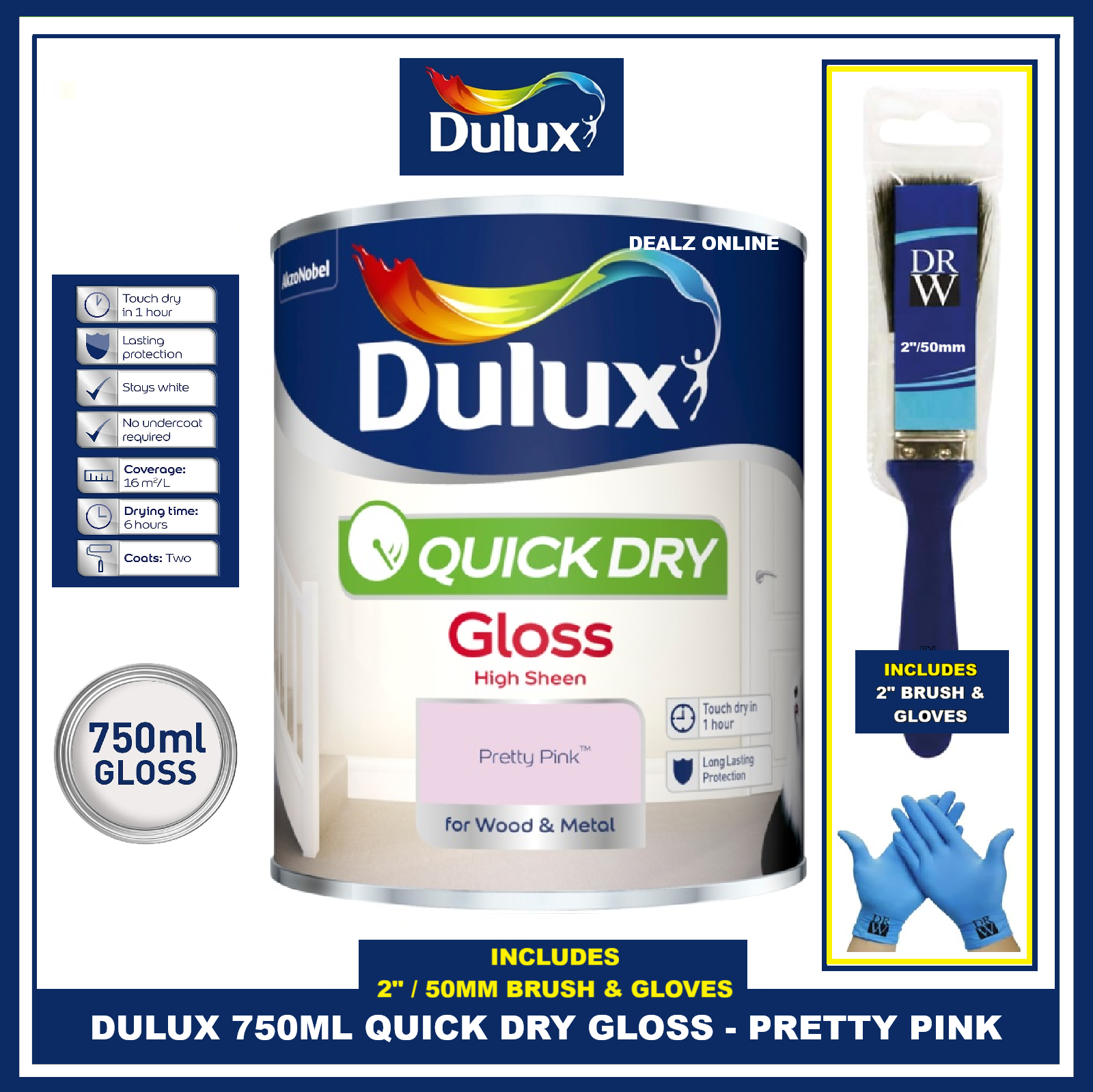 Dulux Quick Dry Pretty Pink 750ML Gloss Paint Int Wood Metal FREE BRUSH & GLOVES