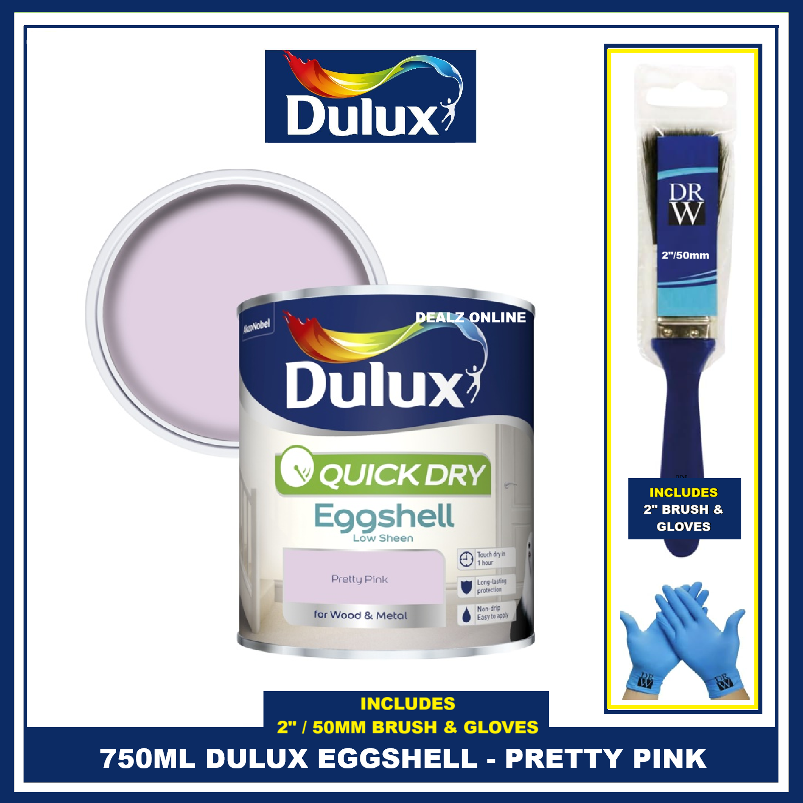 Dulux Quick Dry Pretty Pink 750ML Eggshell Wood/Metal Paint FREE BRUSH & GLOVES