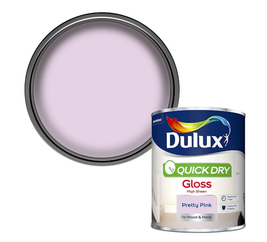 Dulux Quick Drying Gloss 750ml Pretty Pink - Self-undercoating, Wipeable Interior Paint for Wood & Metal