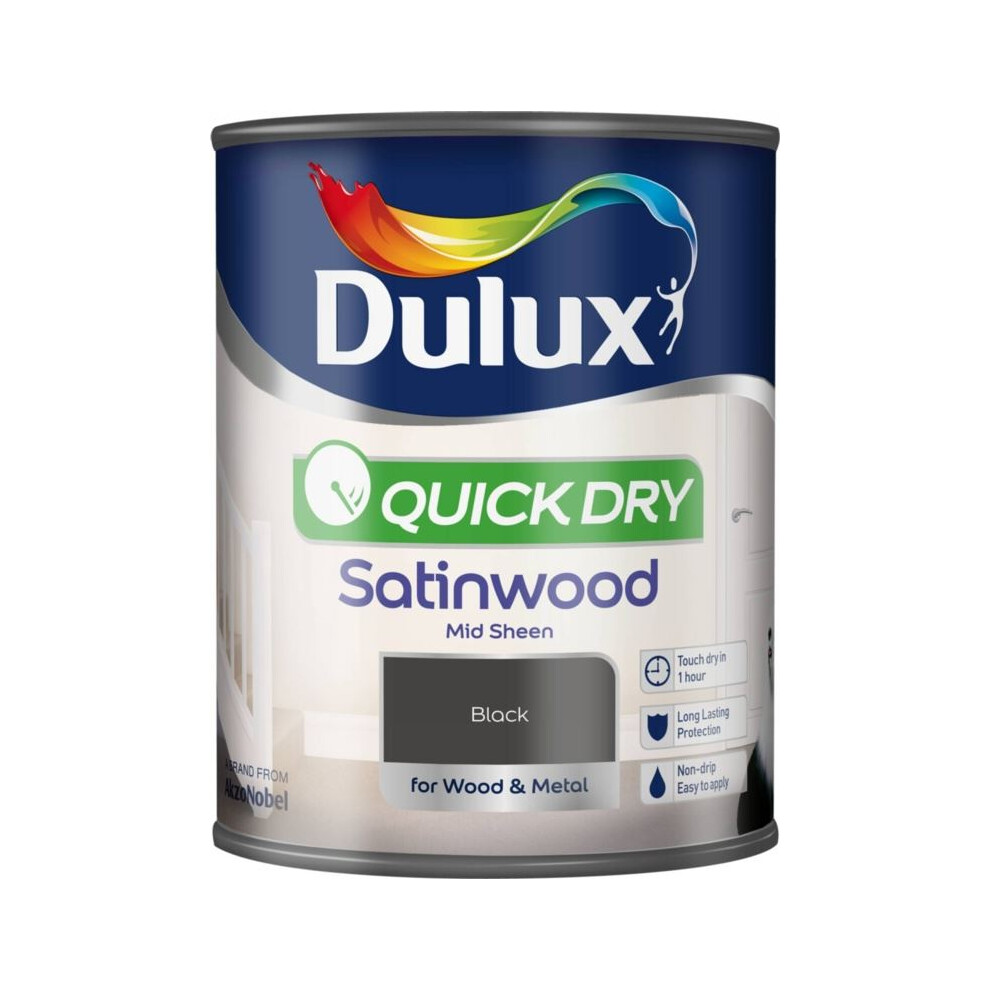 Dulux Quick Dry Satinwood Paint For Wood And Metal, Black, 750 ml