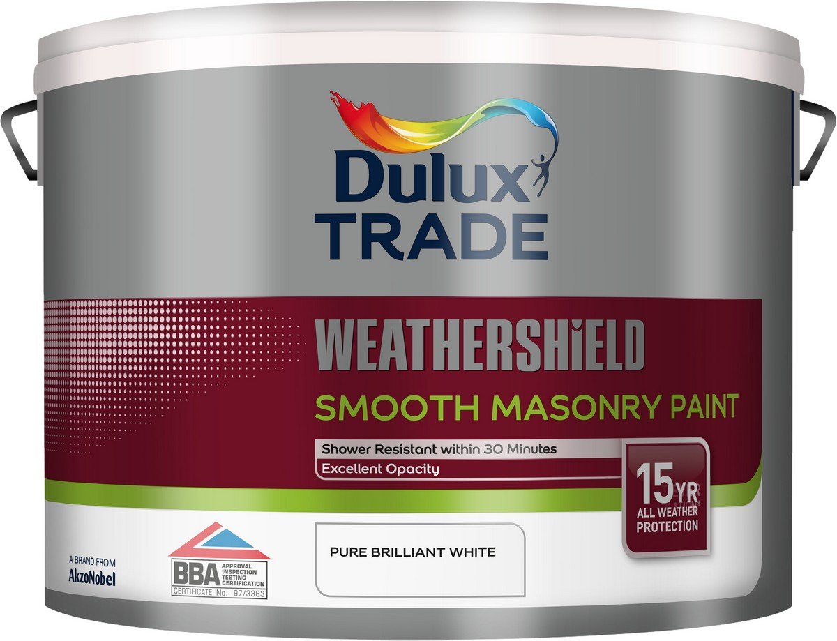 Dulux Trade Weathershield Smooth Masonry Paint 10ltr Brilliant White (New Formulation)