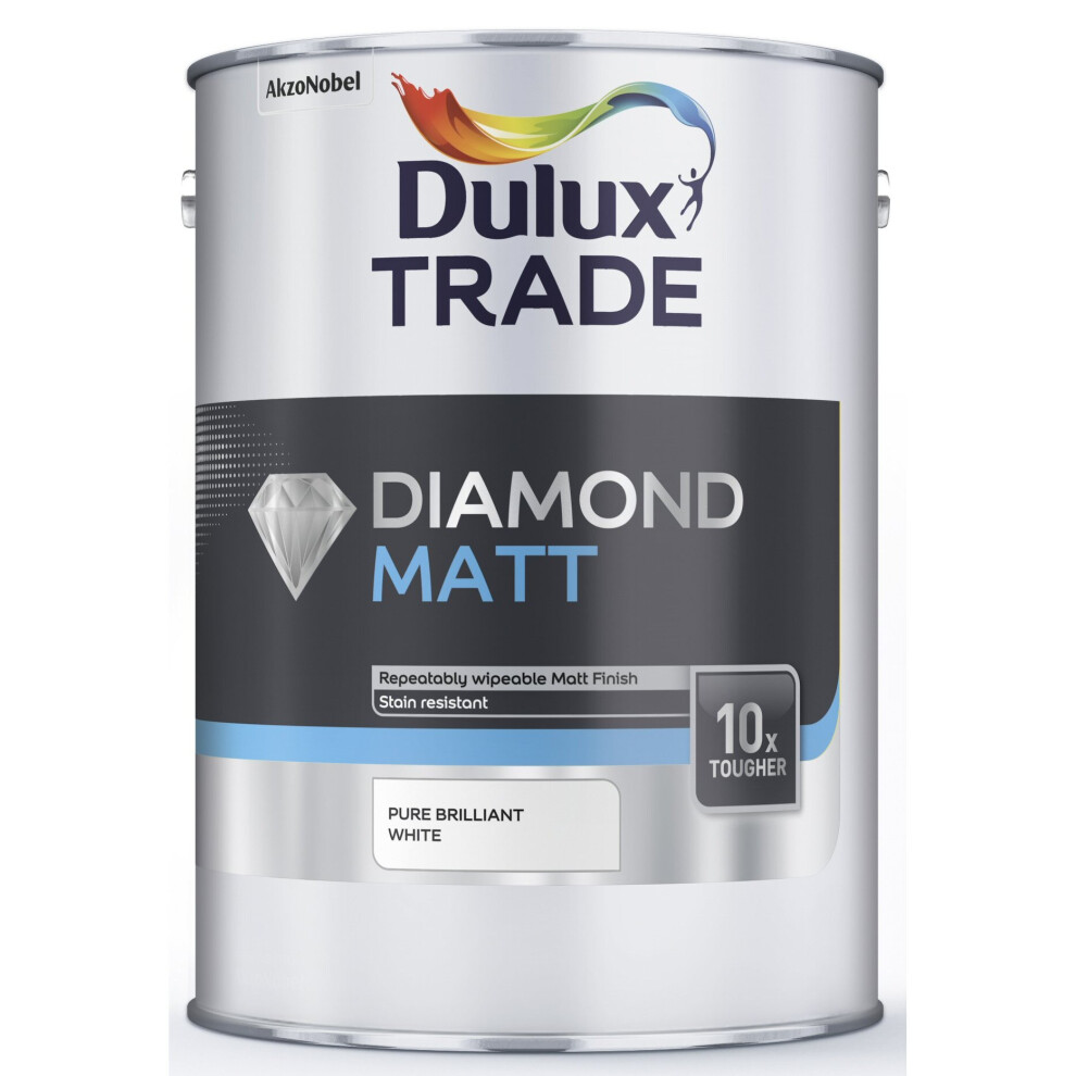 White Paint Dulux Trade 5L Diamond Matt Emulsion Pure Brilliant White NEW UK