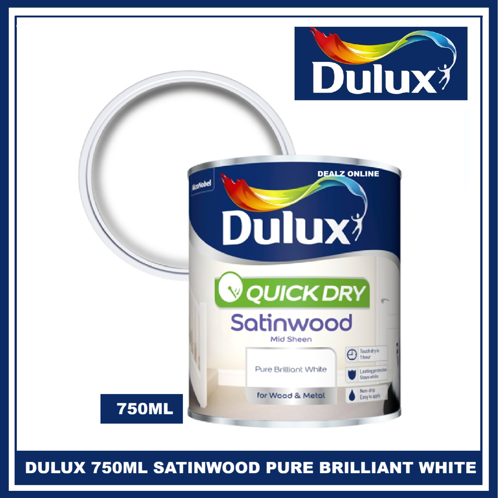 Dulux Quick Dry Satinwood Paint For Wood And Metal Pure Brilliant White 750ml