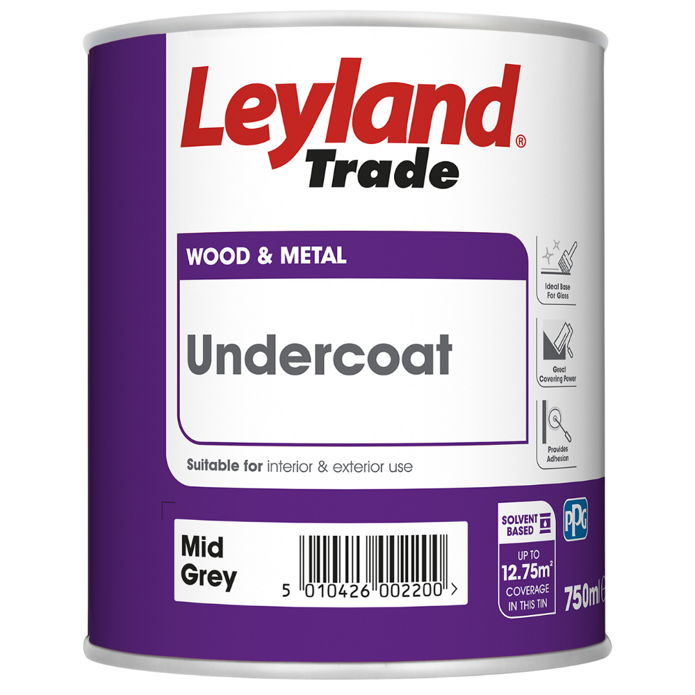Leyland Trade Wood & Metal Undercoat High Opacity Solvent Based 750ml Mid Grey