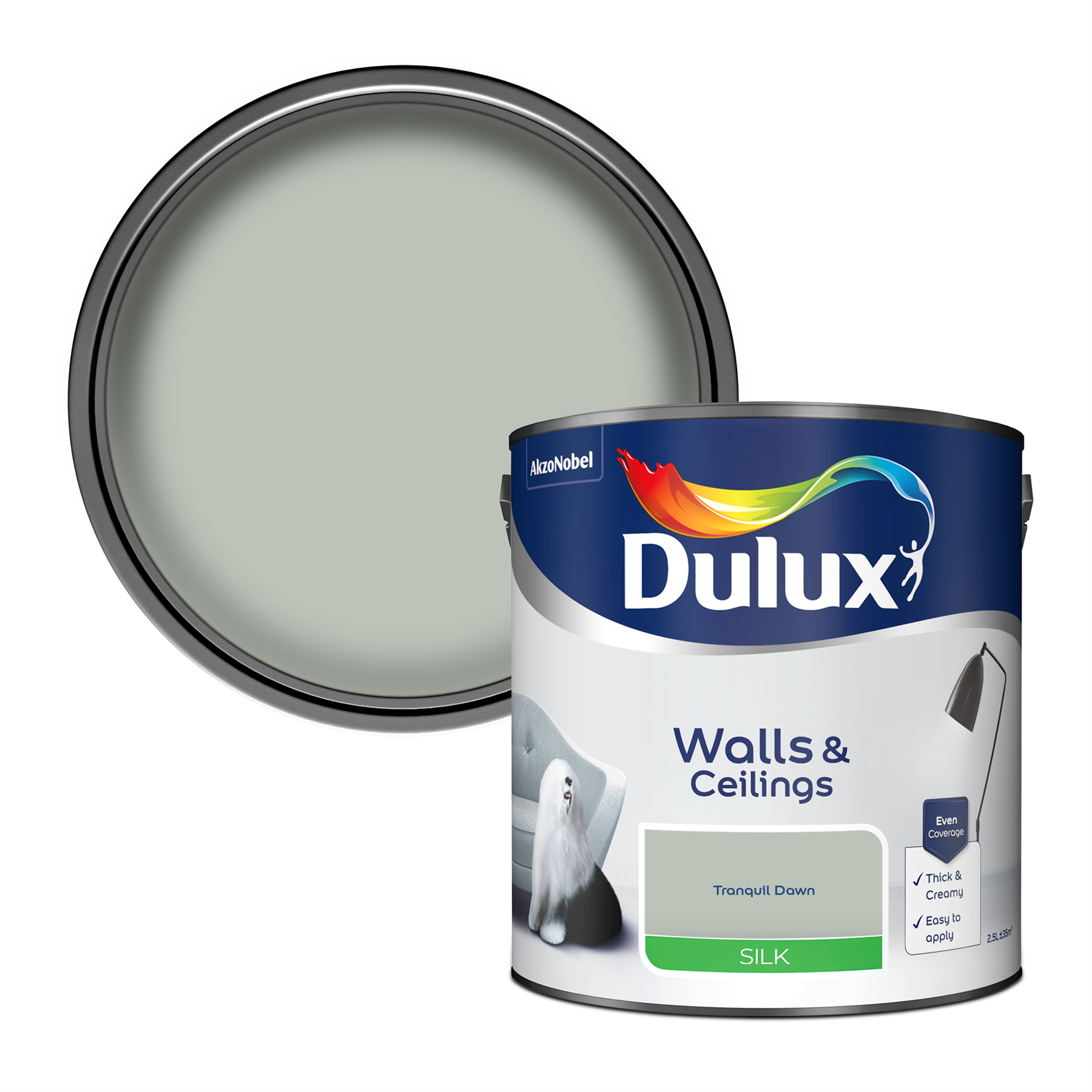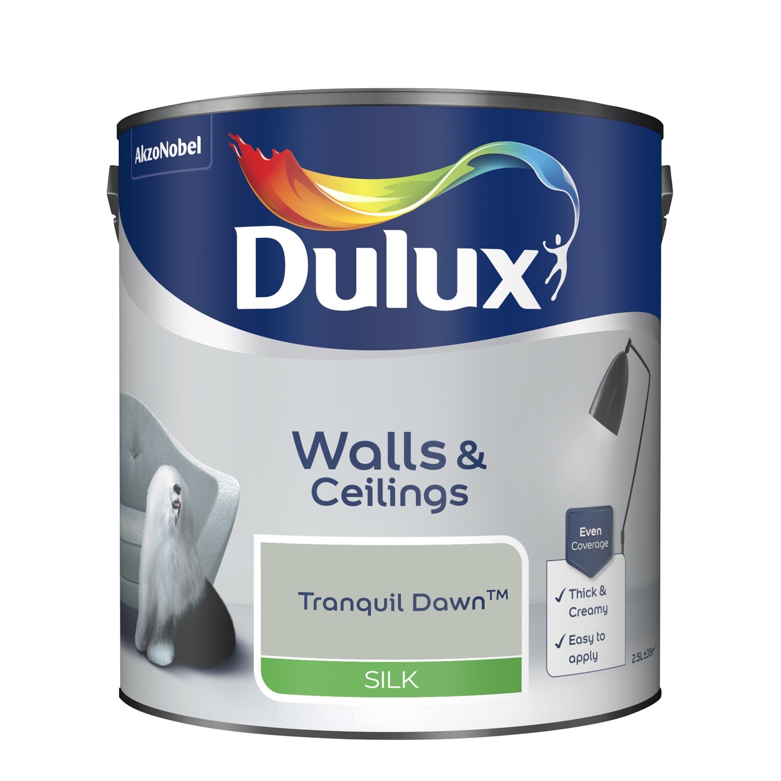 Dulux Smooth Creamy Silk Emulsion Paint Tranquil Dawn 2.5L Walls and Ceiling