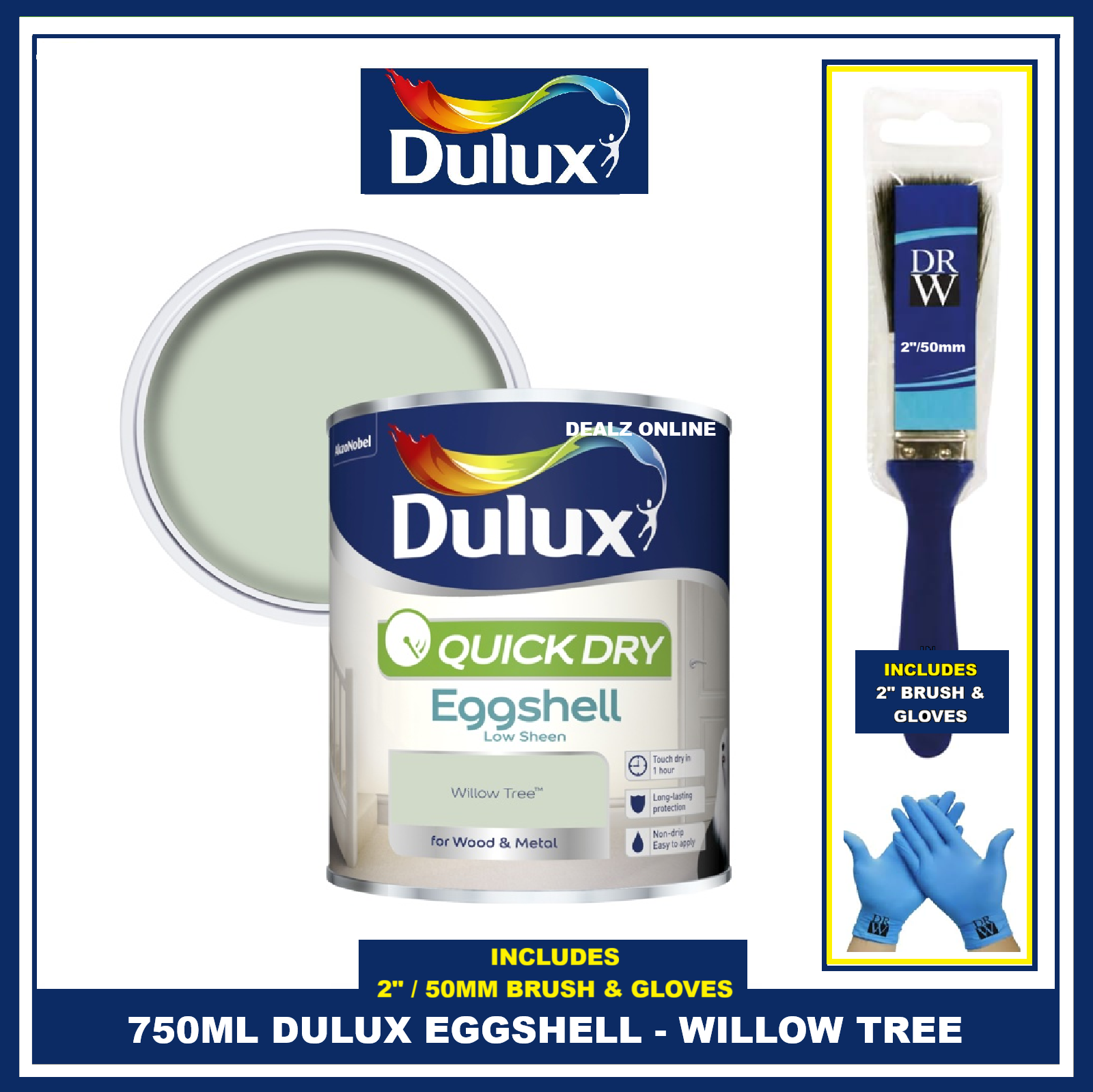 Dulux Quick Dry Willow Tree 750ML Eggshell Wood/Metal Paint FREE BRUSH & GLOVES