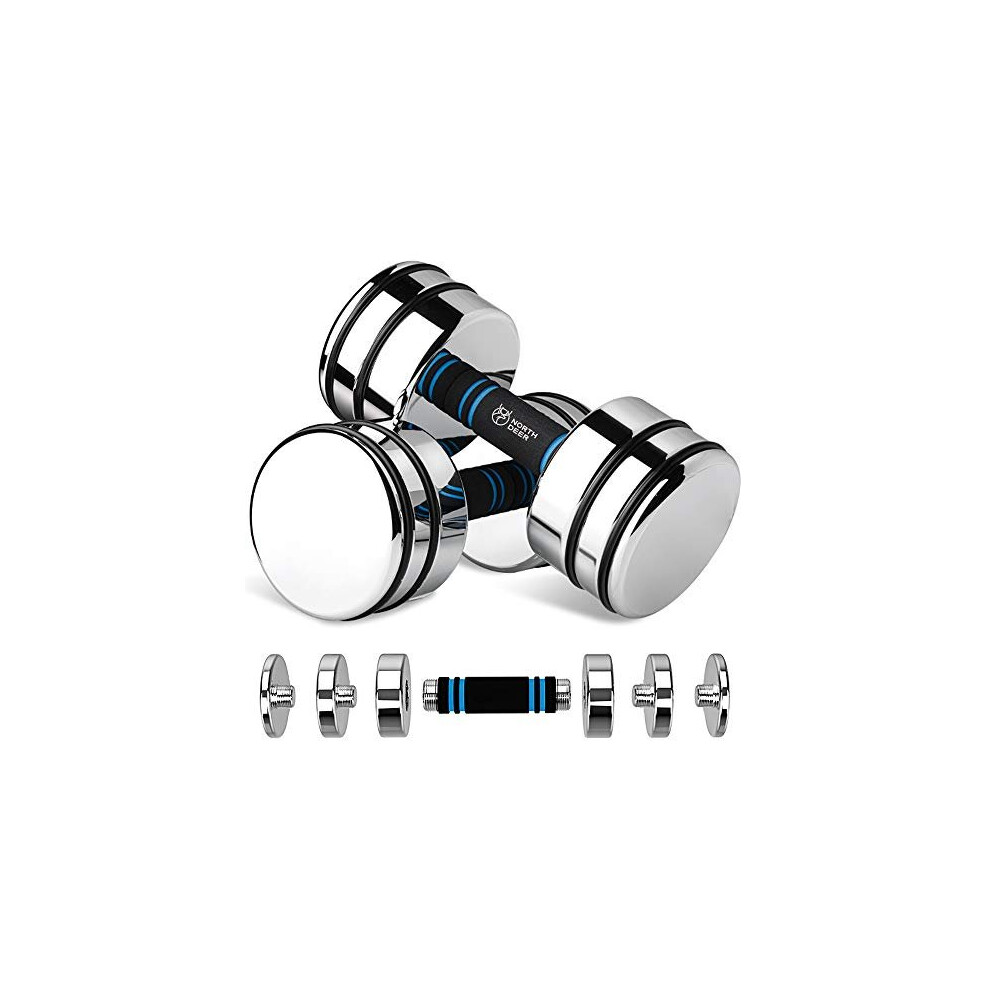 Northdeer Dumbbells Set Adjustable 5kg Pair (2.5kg/3.5kg/4kg/5kg) Ultracompact Chrome Dumbbell Set with Foam Handles Home Gym Workout (25kg)