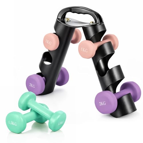 Taidda Fitness Weights Set, 3 Pairs 2lb 3lb 5lb Dumbbells with Holder Rack for Women, Bodybuilding Exercise Equipment, Muscle Training, Portable Home Gym