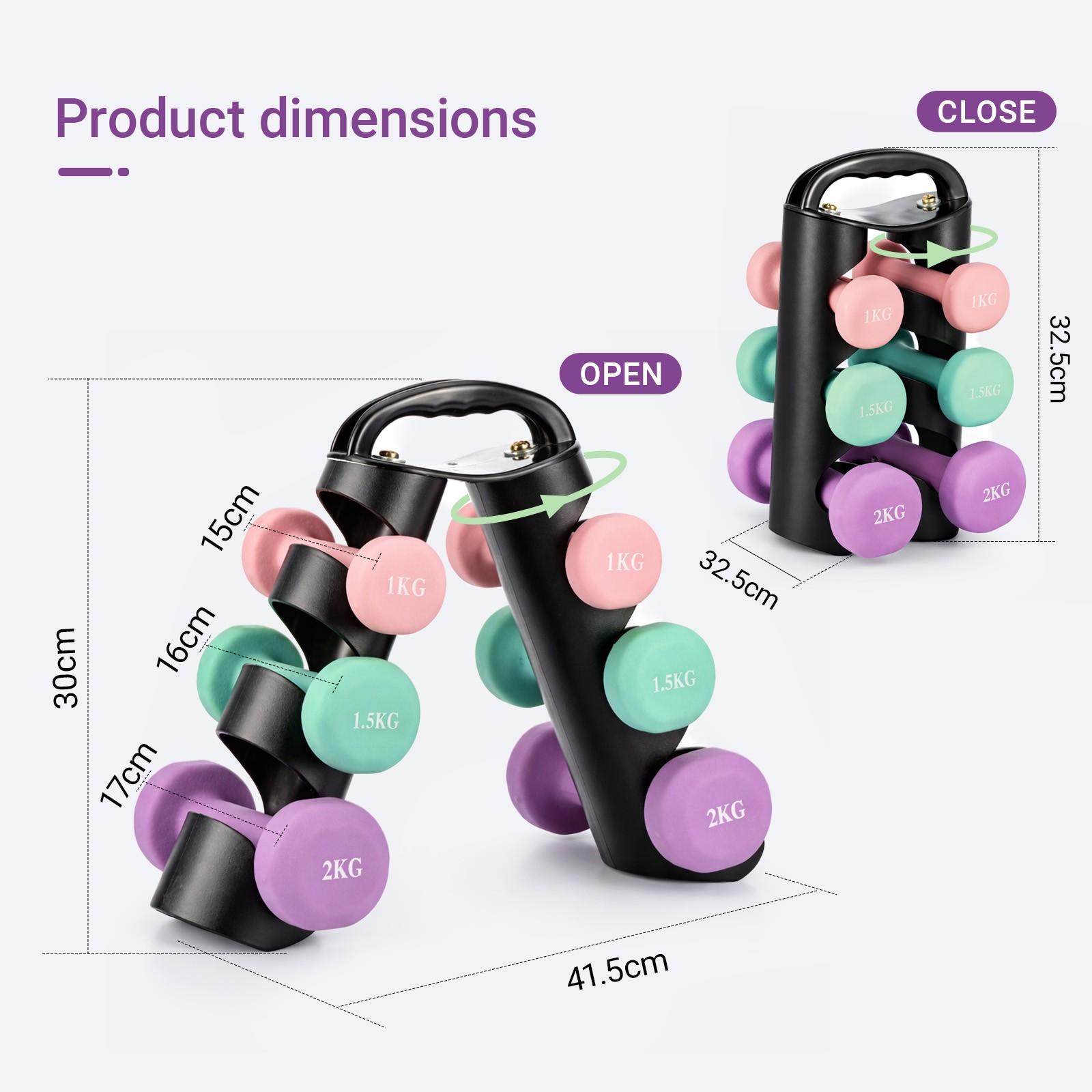 PhysKcal 3-Tier Small Dumbbells Rack, Neoprene Dumbbells Storage Stand, Vertical Hand Weights Tree Holder for Home Gym