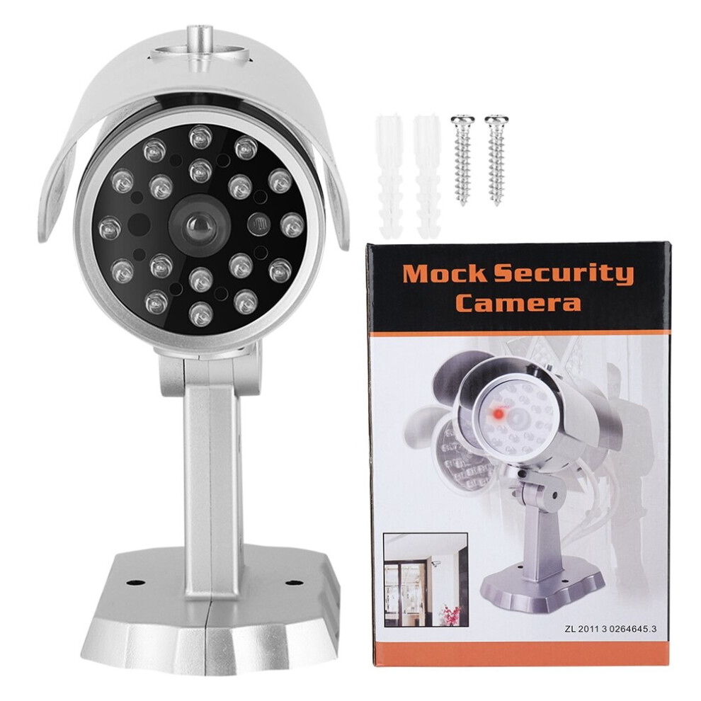Dummy Fake Security Camera Red LED Light Realistic Simulation Surveillance Cameras Built In Photoelectric Sensor Weatherproof Security Camera With War