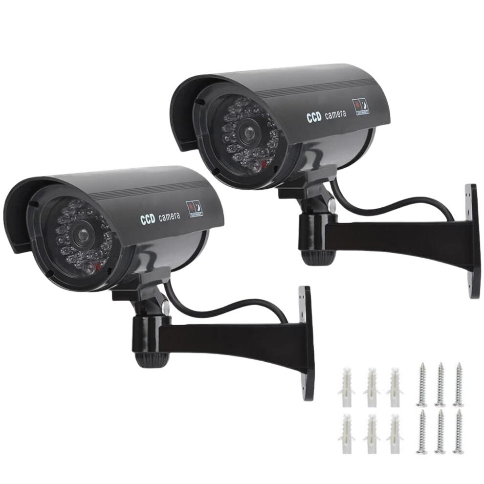 2 Pcs Dummy Security Cameras with Red LED Lights, 11.5 cm, Indoor Outdoor