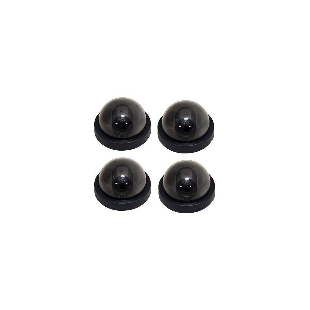 Set of 4 Black Dome Dummy Security Cameras with Flashing LED Lights