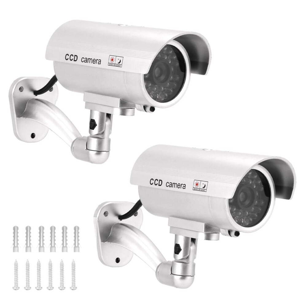 QWORK 2 Pack Silver Dummy Security Cameras with R
