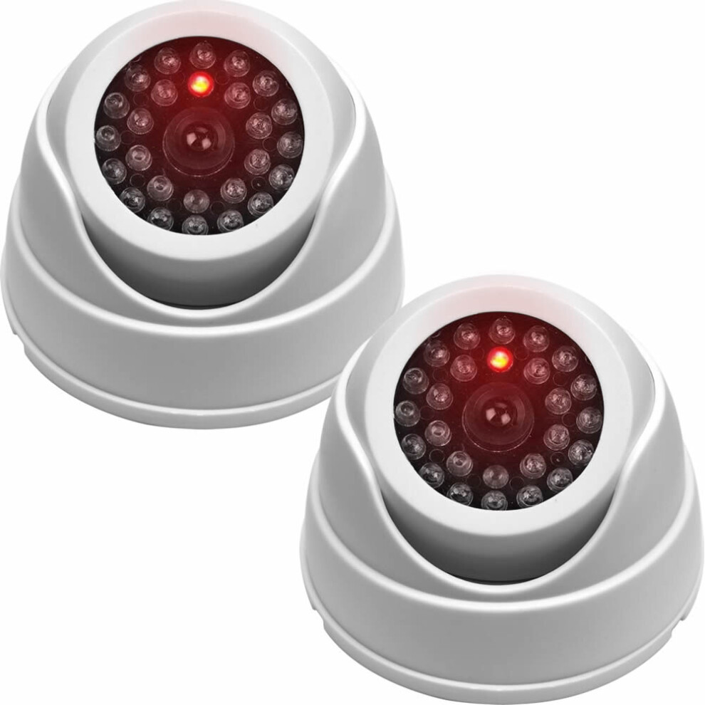 2 x Dummy CCTV Cameras White Dome Security Camera With Red LED