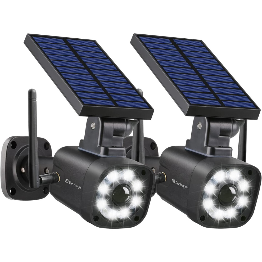 2pc Dummy Security Cameras Imitation CCTV Solar Powered LED Lights 3yr Warranty