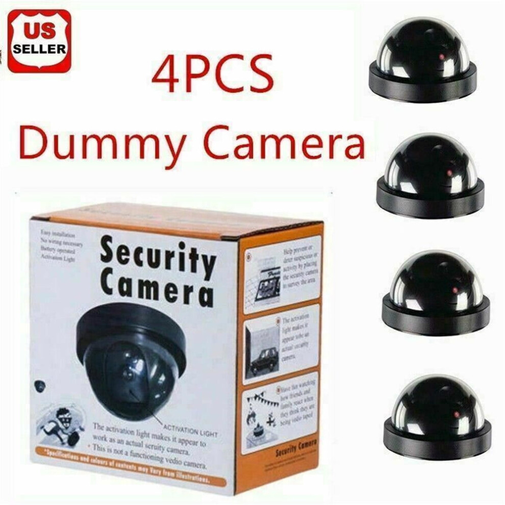 4 x Imitation Dummy CCTV Security Dome Cameras With Flashing Red LED Light