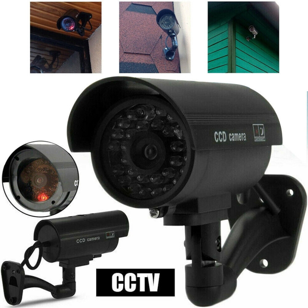 2 Pcs Dummy Security Cameras with Red LED Light Flashes Indoor Outdoor 11.5cm