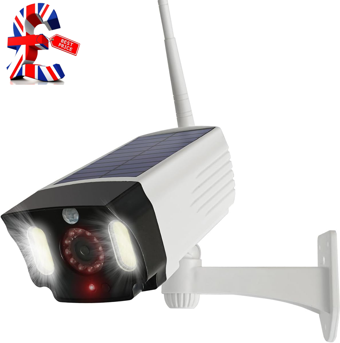 Dummy CCTV Security Camera with LED Floodlight Solar Panel Motion Sensor IP66 UK