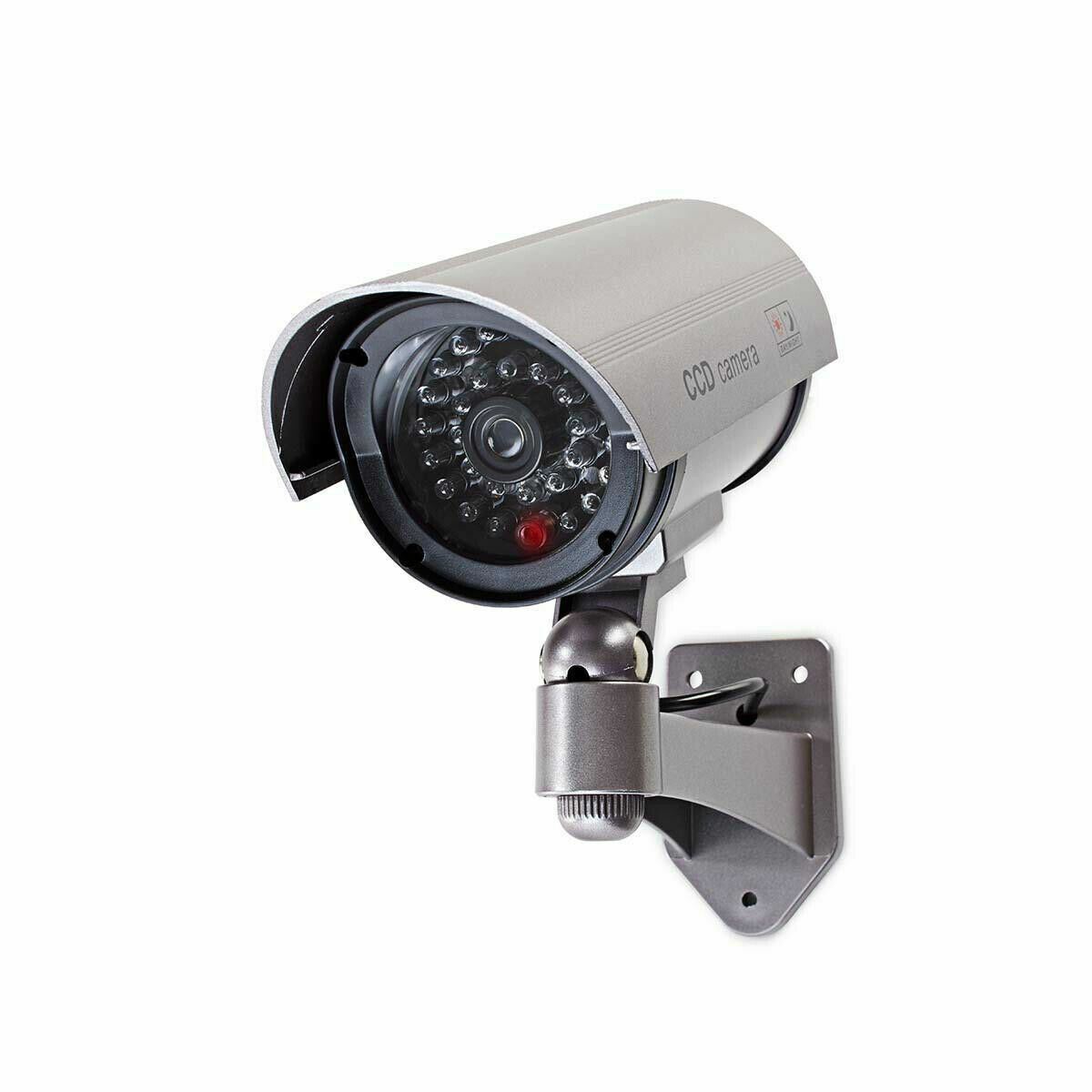 FAKE DUMMY CCTV SECURITY CAMERA SILVER FLASHING SURVEILLANCE LED INDOOR OUTDOOR