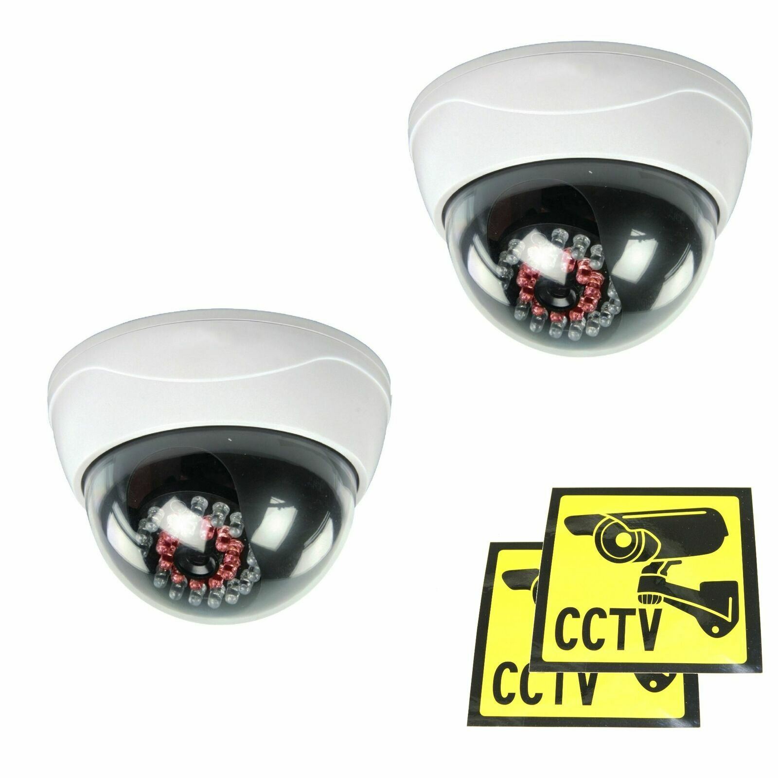 2x Dummy CCTV Dome Security Camera IR Infrared LEDs Lightup in Dark & Sticker