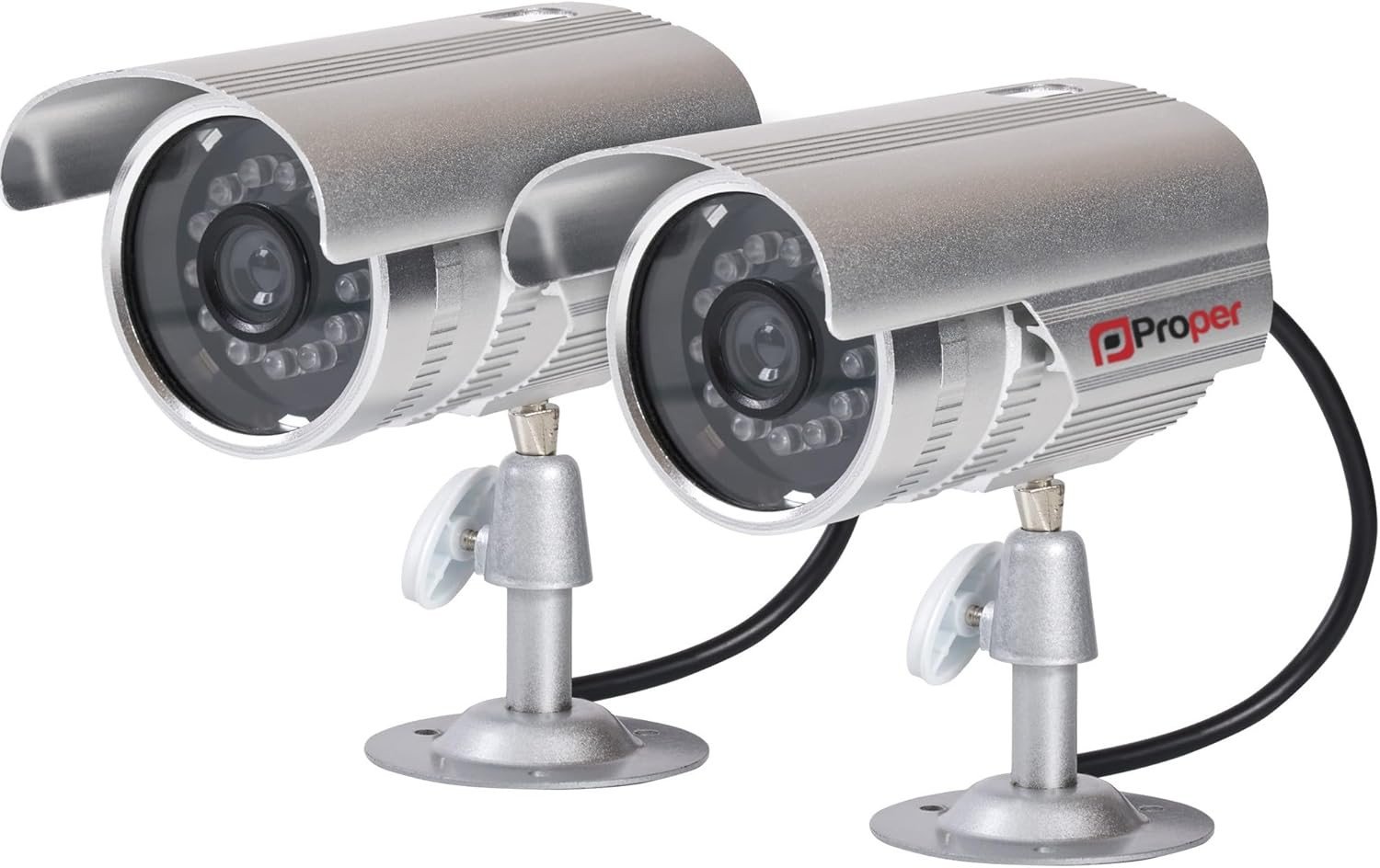 Properav Dummy CCTV Camera Outdoor, Fake Security Cameras Aluminium – 2 Pack