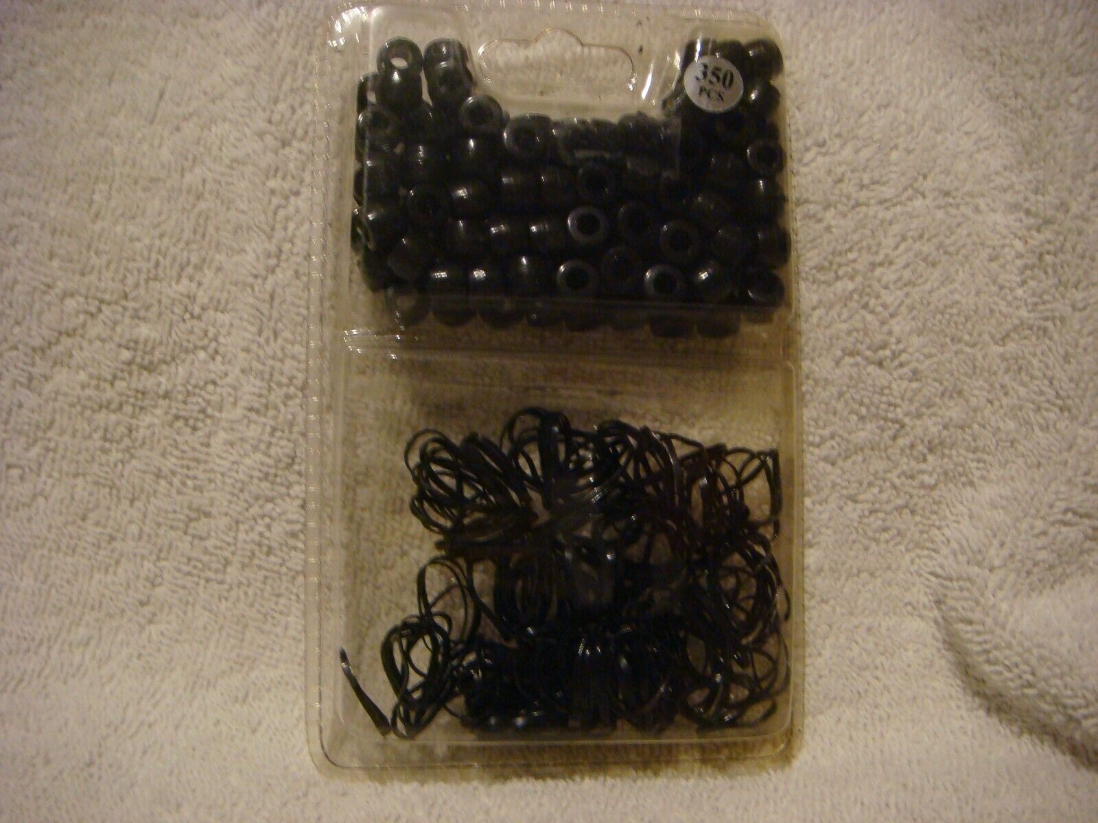 Pony Beads in black with bands for braiding, dummy clips, bracelets, arts/crafts