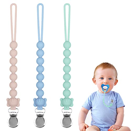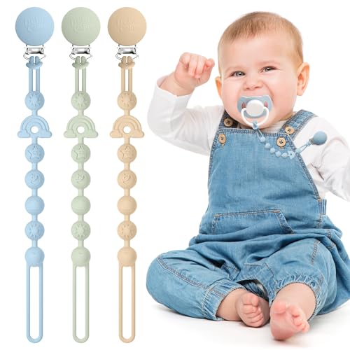 Vicloon Baby Dummy Clips,3 Pcs Silicone Dummy Clips for Baby, Dummy Clip Boys Girls, Soother Pacifier Chain Holder Clips BPA Free Baby Dummy Chain for Teether Toy or Soothie