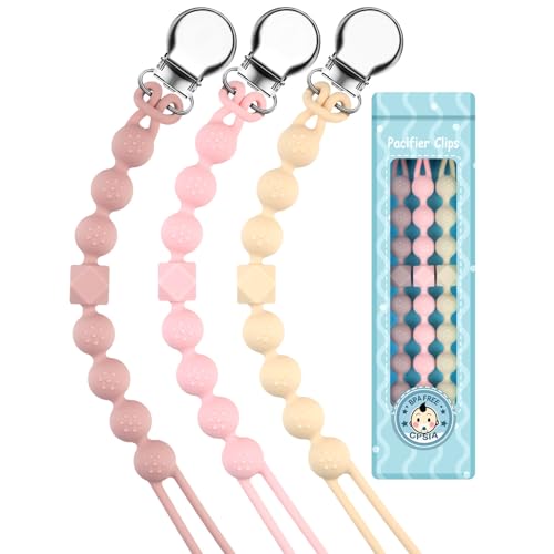 Kowlone Dummy Clips Boys Girls Silicone Soother Pacifier Chain Flexible Binky Holder Set with Texture for Teething Baby Unisex Newborn Dummies 1-Piece Design(Beige,Blue,Grey)