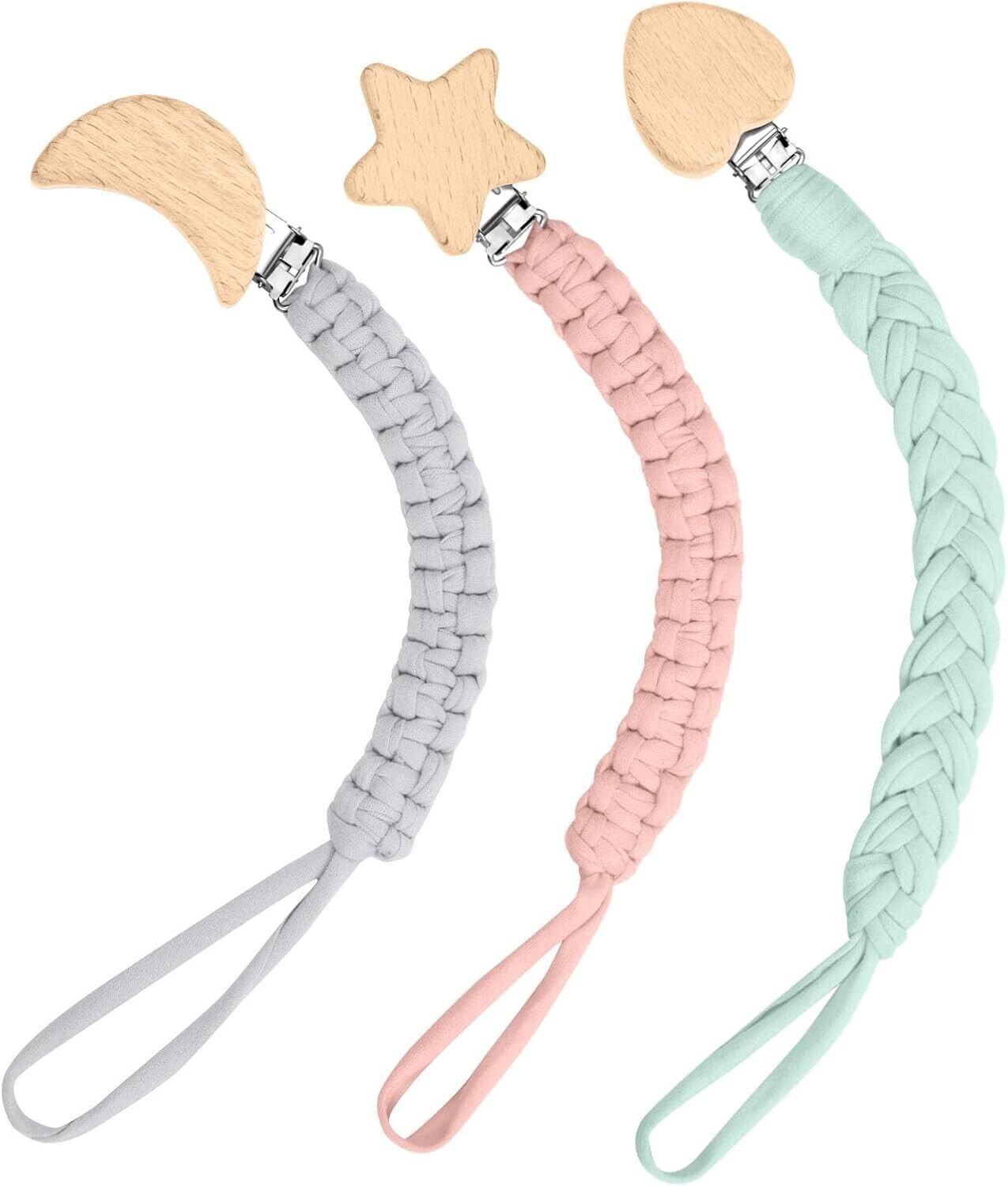Vicloon Dummy Clips for Baby, 3 Pack Wooden Baby Dummy Clips, Soother Pacifier