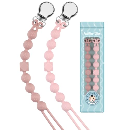 Kowlone Dummy Clips Boys Girls Silicone Soother Pacifier Chain Flexible Binky Holder Set with Texture for Teething Baby Unisex Newborn Dummies 1-Piece Design(Quartz Pink)
