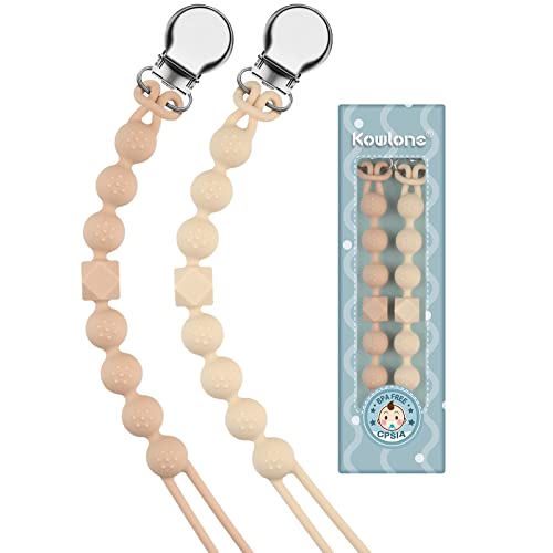 Kowlone Dummy Clips Boys Girls Silicone Soother Pacifier Chain Flexible Binky Holder Set with Texture for Teething Baby Unisex Newborn Dummies 1-Piece Design(Beige,Oatmeal)