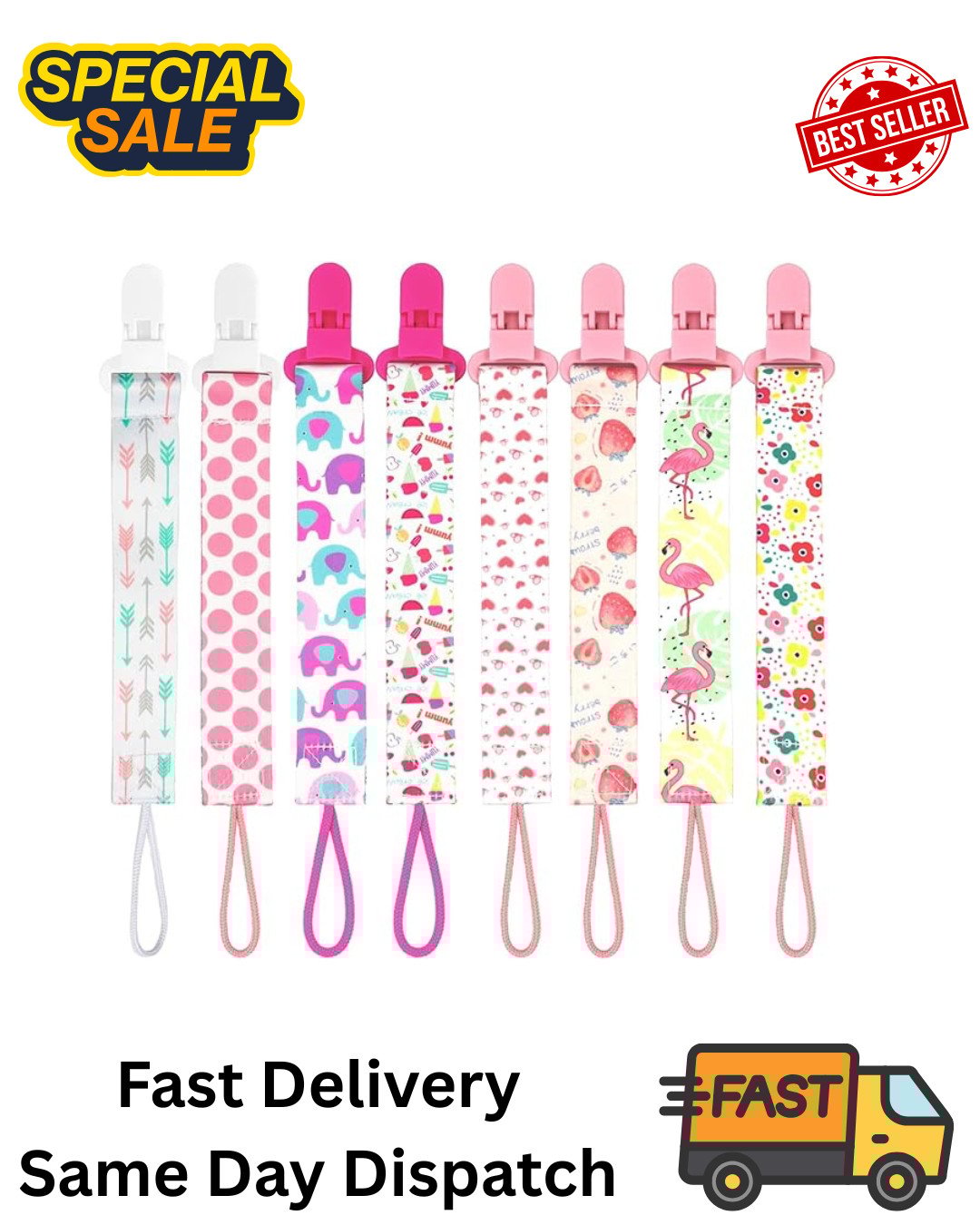 8 Dummy Clips Hearts Baby Boy Girl Soother Chain Holder Strap Pacifier BPA Free