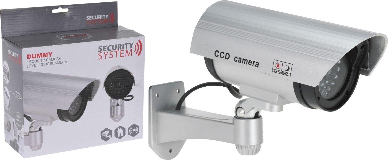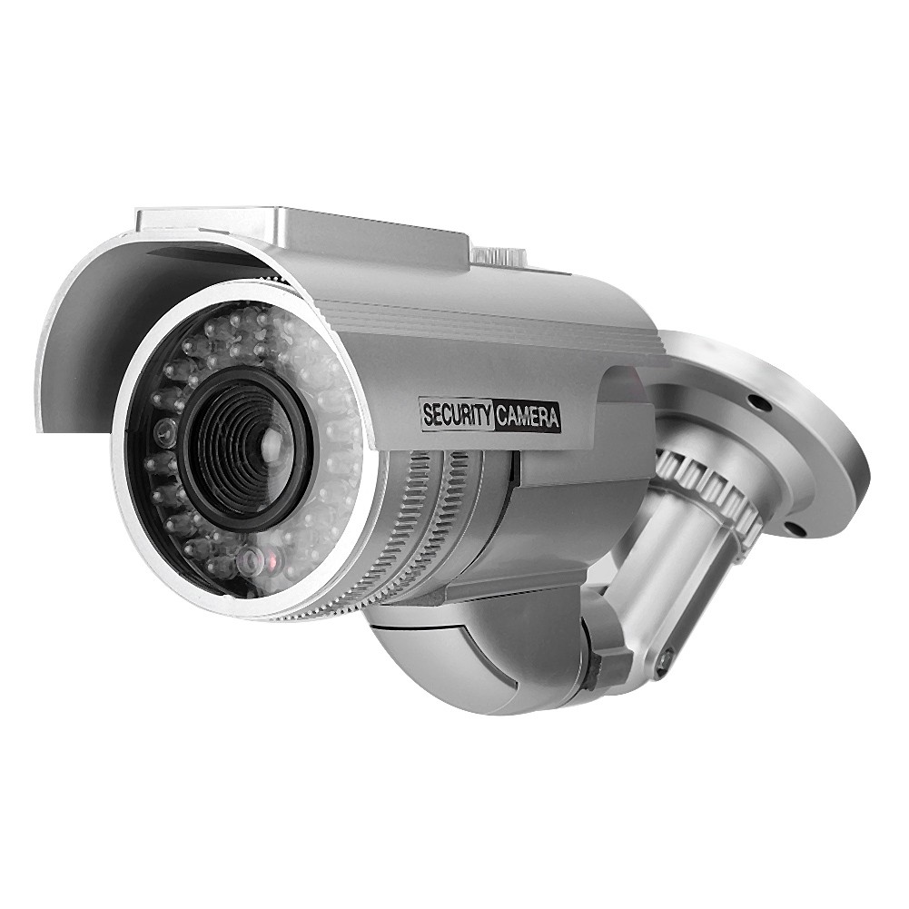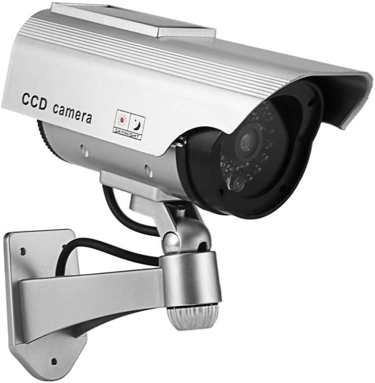 Properav Outdoor Indoor Fake Dummy Imitation Dummy CCTV Security Camera, Waterproof Aluminium with Blinking Flashing Light Bullet Shape Silver