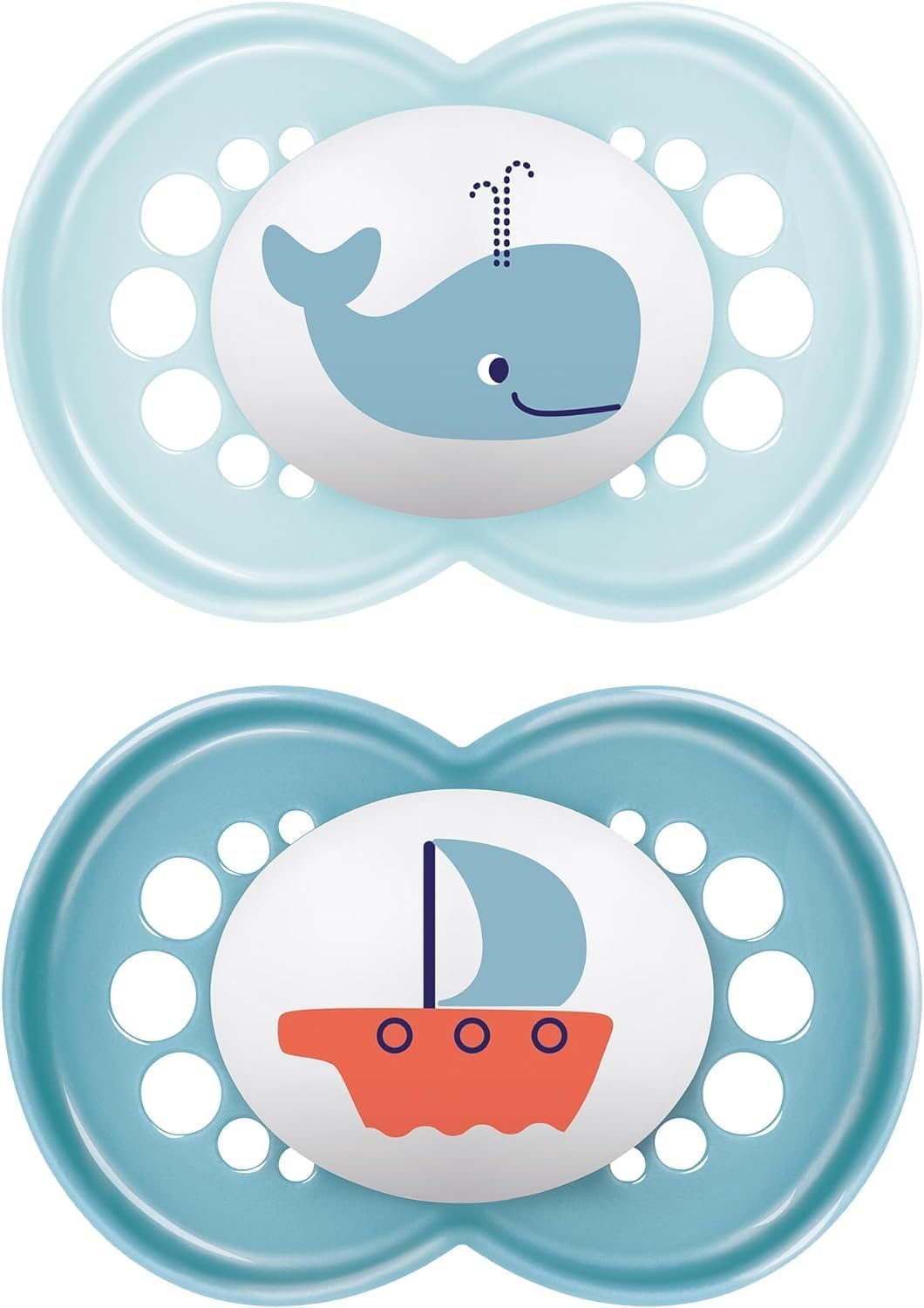 MAM Original Soothers | 18-36 Months | Pack of 2 | Comes in Dummy Steriliser Box | Sustainable Materials | Baby Accessories | Blue (Various Designs)