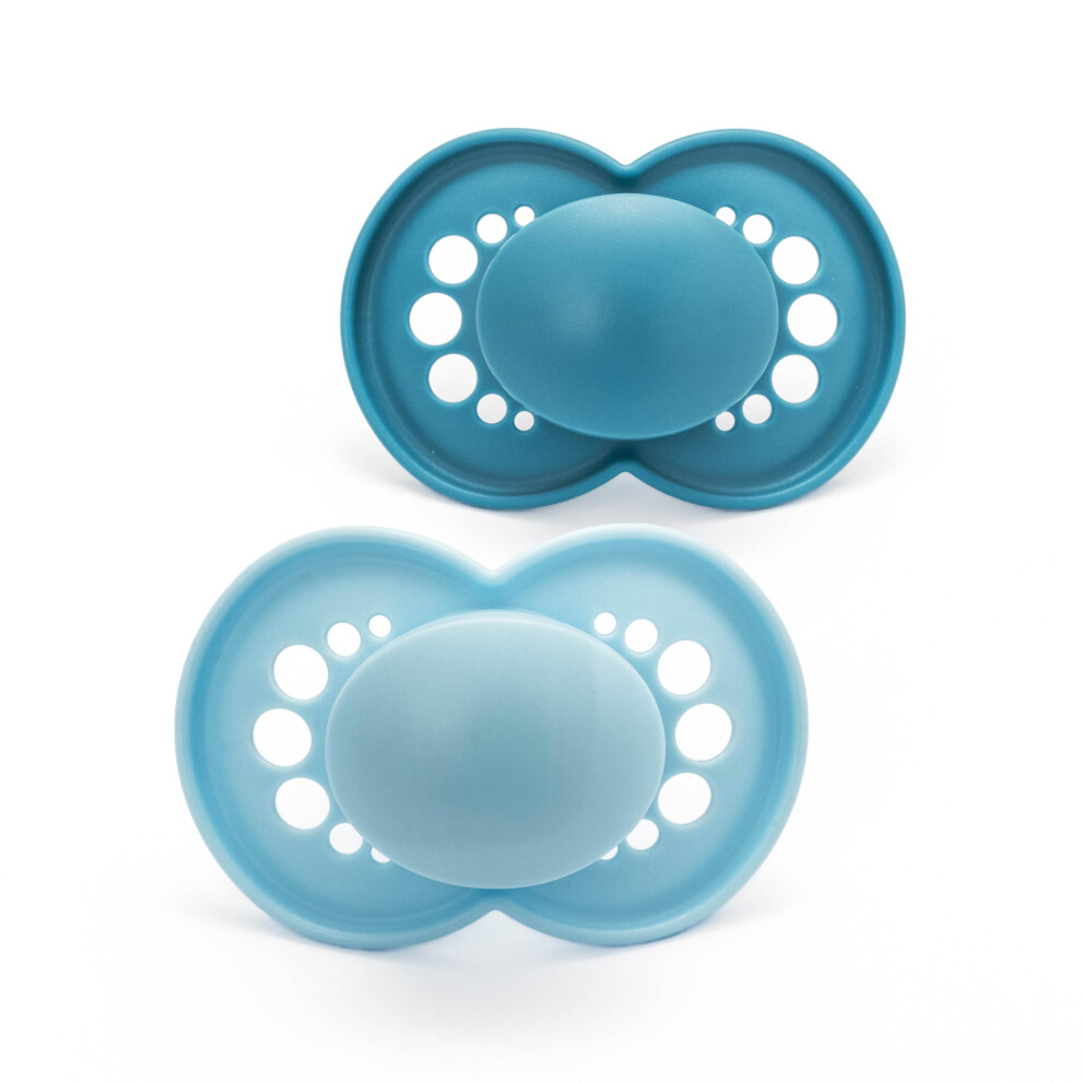 MAM Comfort All Silicone Soothers | 3-12 Months | 2 Pack | Comes in Dummy Steriliser Case | Sustainable Materials | Baby Accessories | Grey/Blue
