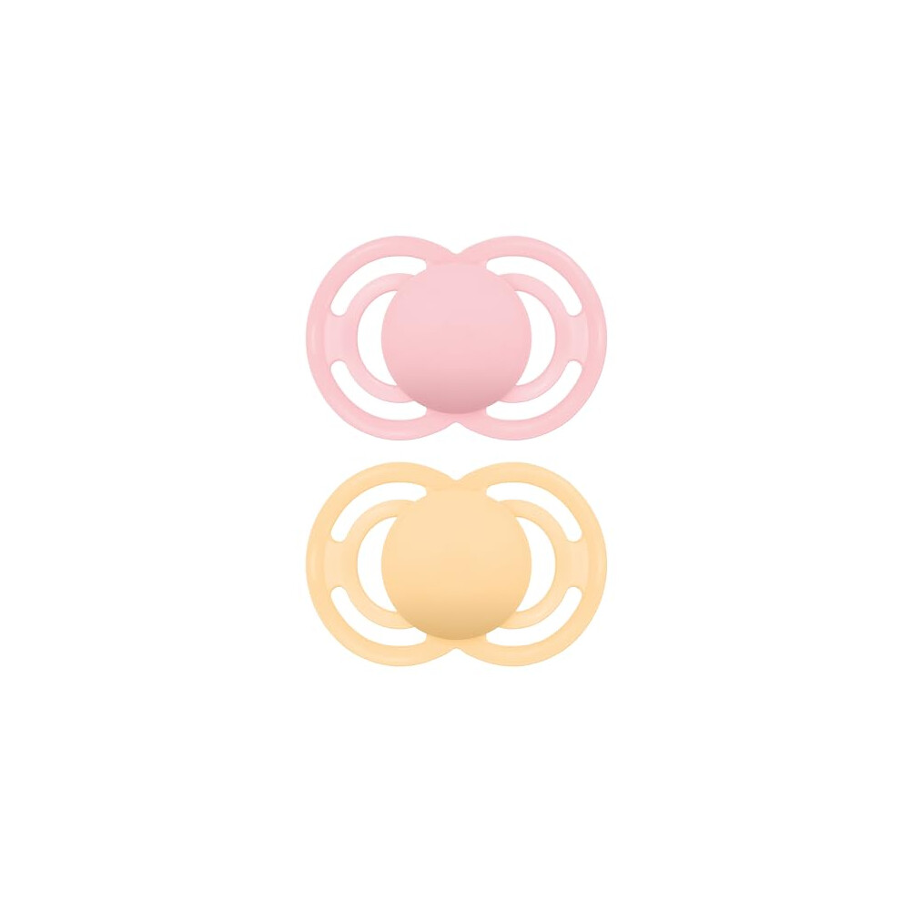MAM Perfect Soothers | 6 Plus Months | 2 Pack | Comes in Dummy Steriliser Case | Sustainable Materials | Baby Accessories | Pink (Various Designs)
