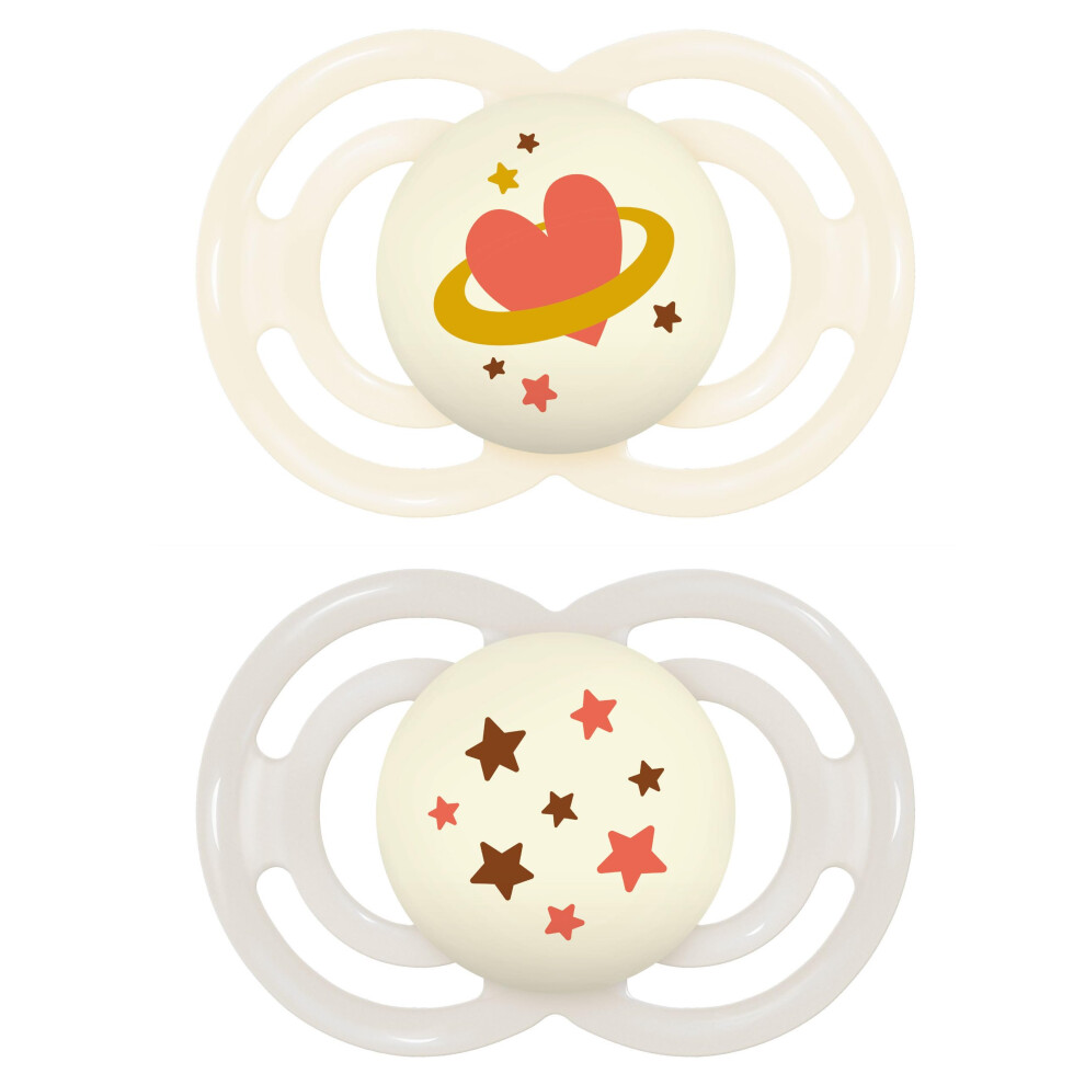 MAM Air Night Soothers | 6-18 Months | 2 Pack | Glow in The Dark Dummies | Comes in Dummy Steriliser Case | Baby Accessories | Pink (Various Designs)