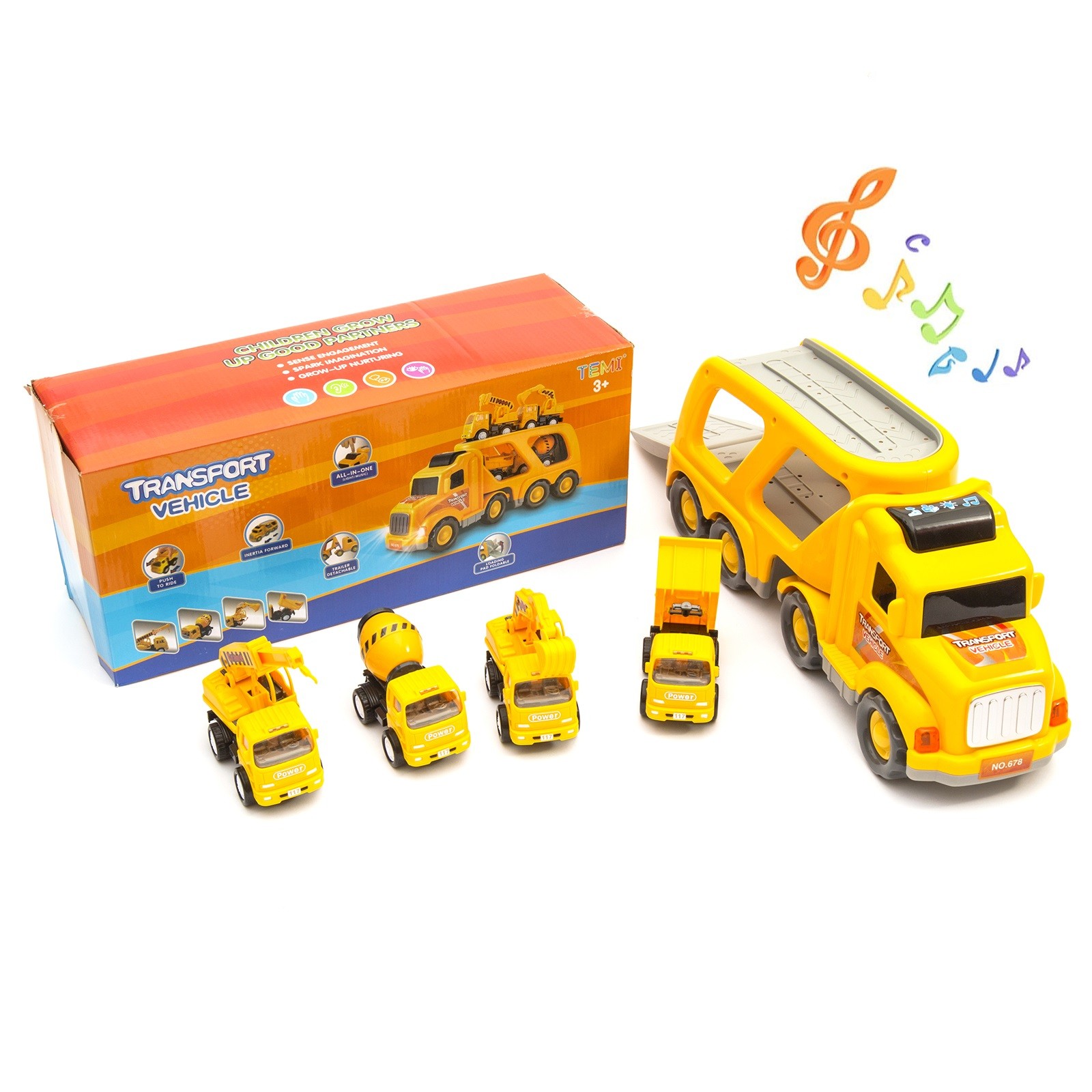 25 in 1 Construction Truck Vehicle Toy Set (Including Transporter Excavator Digger Dumper Tractor) with Sounds and Lights in Carrier Truck, Kids