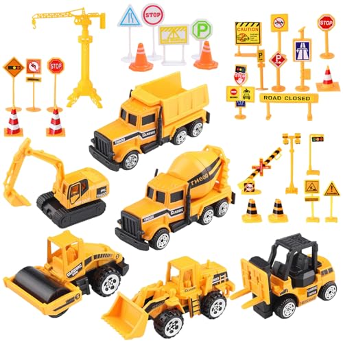 Oriate Construction Vehicles Toys, Engineering Vehicles Set Mini Digger Cake Toppers Dumper Bulldozer Dump Truck Small Toy Car Set for Kids Children Boys Girls, Gifts for Age 3 4 5 6 Year Olds