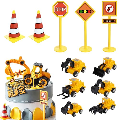 Sunarrive Construction Vehicles Toys - Mini Digger Cake Toppers - Dumper Bulldozer Dump Truck - Small Toy Car Set for Kids Children Boys Girls - Gifts