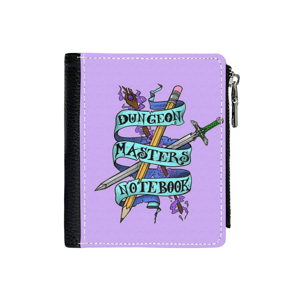 (Dungeon Master's Notebook V1_113) PU Wallet Compact Bifold with Zipper & Multiple Card Coins Slots Black Stylish Durable Graphic Design Print for Men