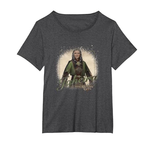 Dungeons & Dragons Jaheira Confident Pose Big Chest Poster T-Shirt, Women's Plus, Dark Heather Grey, 3X