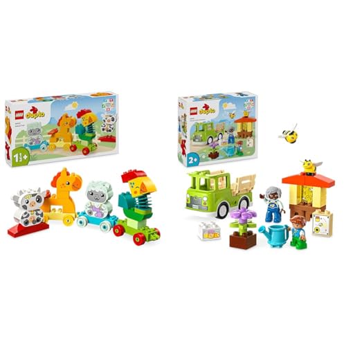 LEGO DUPLO My First Animal Train Toy for Toddlers, Creative Bricks Learning Set with Rooster, Horse & DUPLO Town Caring for Bees & Beehives, Kids’ Learning Toy with Drivable Truck